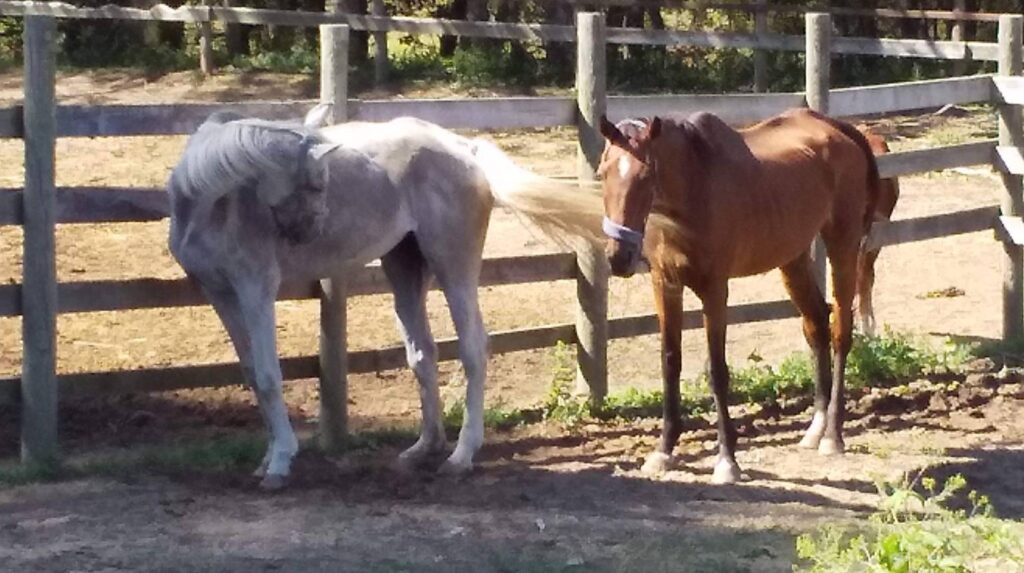 ジェットファームの引退馬たちは、本来夏は昼夜放牧の予定でしたが、7月から8月半ばにかけては、暑さの影響で、日中は牧草地に出かけることはほとんどありませんでした。しかしようやく、朝から夕方までけっこう長い時間を外で過ごすようになり、よく歩きよく食べています。